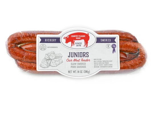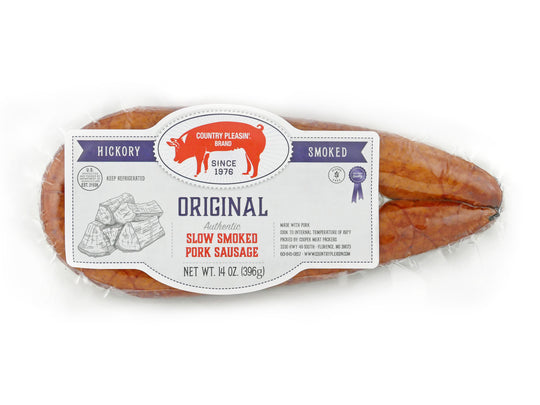 Let's talk about what we consider our masterpiece... our award winning, Country Pleasin' Brand Smoked Sausage. This stuff is just plain good. Whether you cook it on the skillet in the morning for breakfast or grill it with your finest steak, you won't be able to get enough.